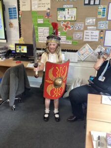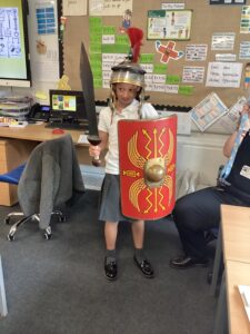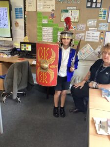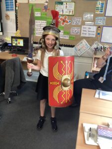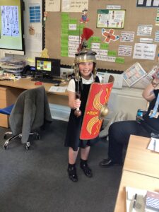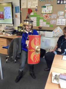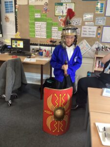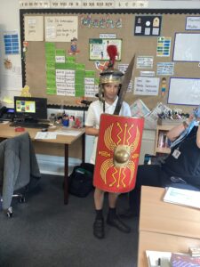 We had a visit from Touchstones museum this morning, who led a workshop all about the Roman’s.