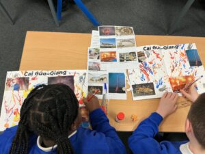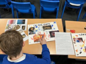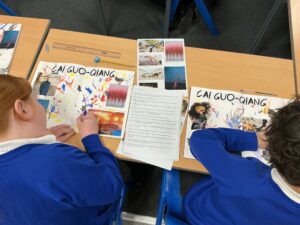 Year 5 have been learning about the incredible installation artist Cai Guo-Qiang, and creating artist study pages about his work and life. The children used paint and straws to recreate his explosive style. We researched facts about Cai and chose our favourite ones to add to our pages. The final results are brilliant, well done Year 5.