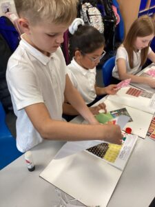Inspired by her style, we created our own collage artworks using brightly coloured papers. We carefully overlapped shapes to build texture and depth, thinking about how different colours and patterns work together.