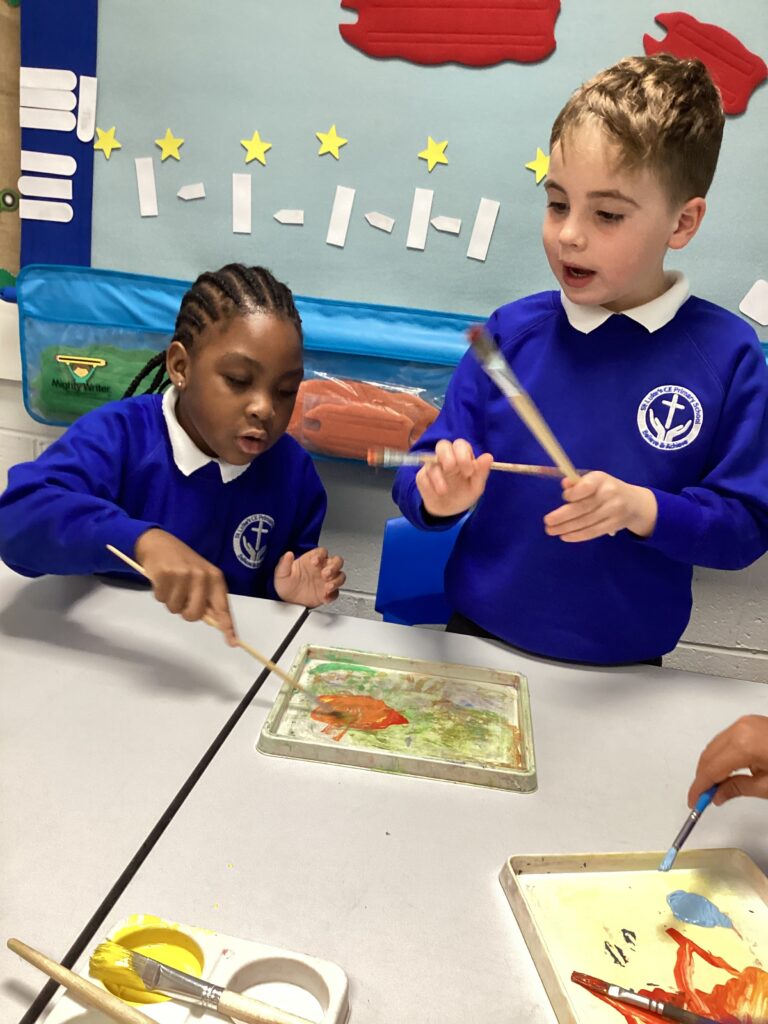 In out first colour mixing Art lesson, children explore how primary colours can be combined to make new colours. Using paints, they experiment by mixing red, blue, and yellow to create secondary colours like green, orange, and purple. The lesson encourages hands-on discovery, creativity, and careful observation as pupils notice how changing the amounts of each colour affects the result.