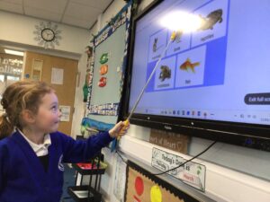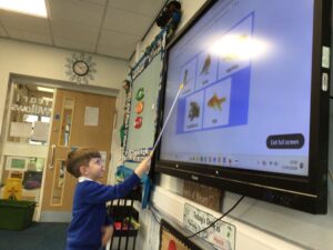Using the Comparing Animals presentation, children explored how animals can be sorted into groups. They identified similarities (e.g. fish living underwater with gills) and differences (such as hair/no hair) They also learned about reptiles, recognising shared features like dry, scaly skin and egg-laying, while noting differences between species.
