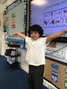 This fun and interactive lesson introduced children to animal body parts and how animals can be grouped by their features. Working in pairs, pupils acted out body parts from the Animal Body Parts presentation—such as tails, fins and trunks—while their partner guessed. They then extended their ideas by inventing actions for new body parts like gills, claws, whiskers and snouts.