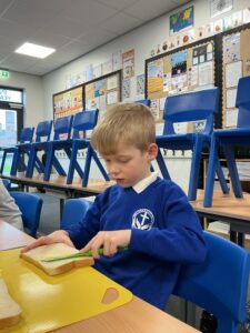 This week in cookery club, the children have been busy learning how to make simple, healthy sandwiches. The children began by discussing what makes a good sandwich. They explored different types of bread, fillings, and combinations, thinking about taste, texture, and appearance. Making sandwiches might sound simple, but it involves a surprising number of important skills: