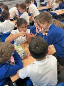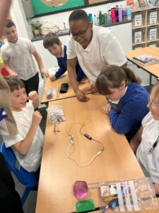 This afternoon, Year 5 Juniper have started their new Design and Technology unit – Electrical Systems: Doodlers. For today’s lesson, the children looked at the different components that create a simple circuit. They were able to identify crocodile wires, batteries, bulbs and motors. They were able to create their own circuits to light up the bulb and use the motor to get the propeller to rotate. We were able to implement our Skills Builder focuses into our lesson as we did lots of problem solving and teamwork. Well done Year 5!