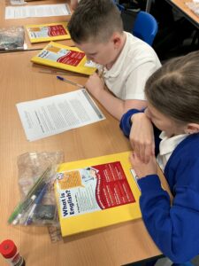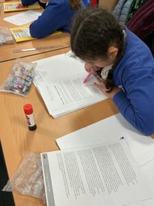 In English today, we moved onto our new topic which is surrounding biographies and non-chronological texts. The first text we looked at today was a biography written about Jane Goodall and her journey through her life from getting her first chimpanzee teddy, to working with primates in the jungle. The children had to locate different sections of the biography – heading, early life, achievements as an example) and draw the correct symbol next to their paragraph. They did great!