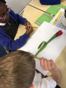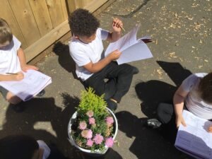 The children also explored the difference between wild and garden flowers. As part of this, they went on a flower hunt around the school grounds, using an identification key to name each flower and decide whether it was a wild or a garden variety.
