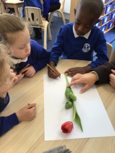 This week in Science, Year 1 have been learning a song about the different parts of a plant, along with actions to help them remember the function of each part. They labelled the parts of a flower and learned to identify each one.