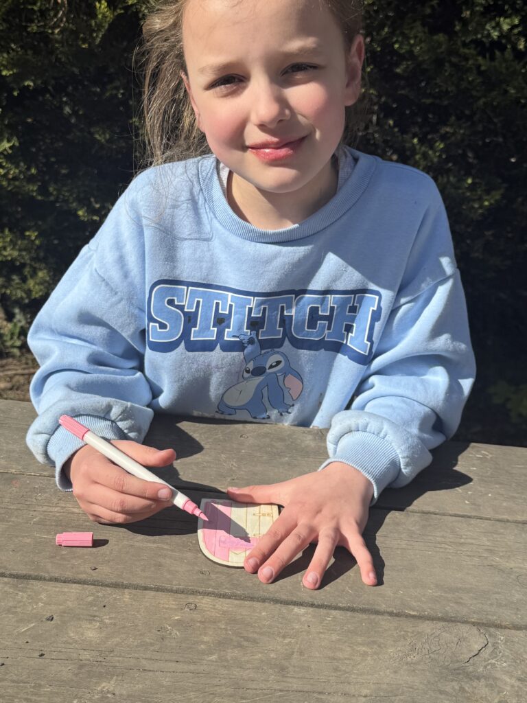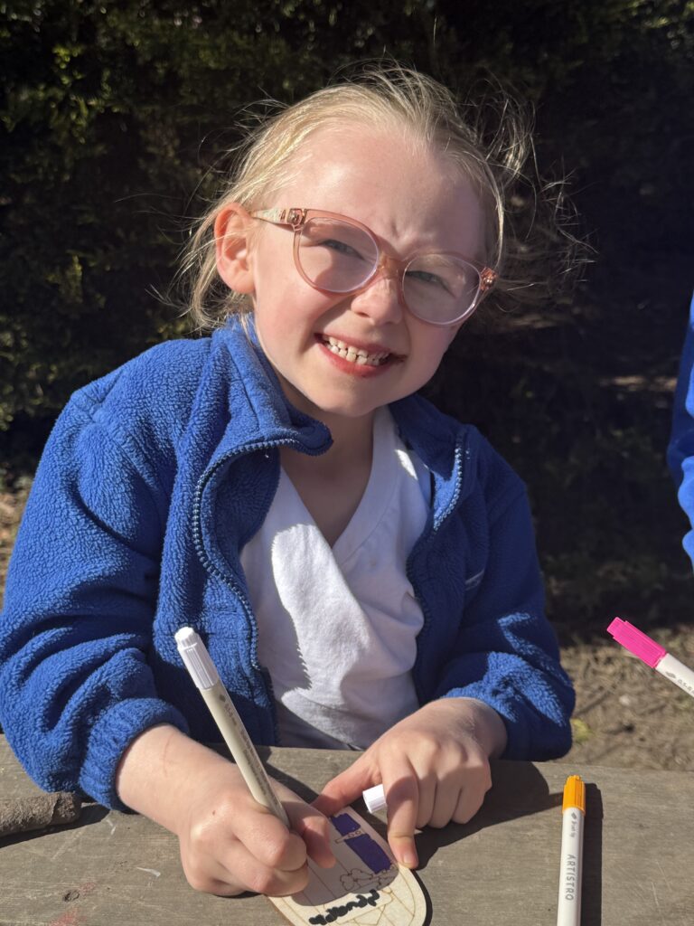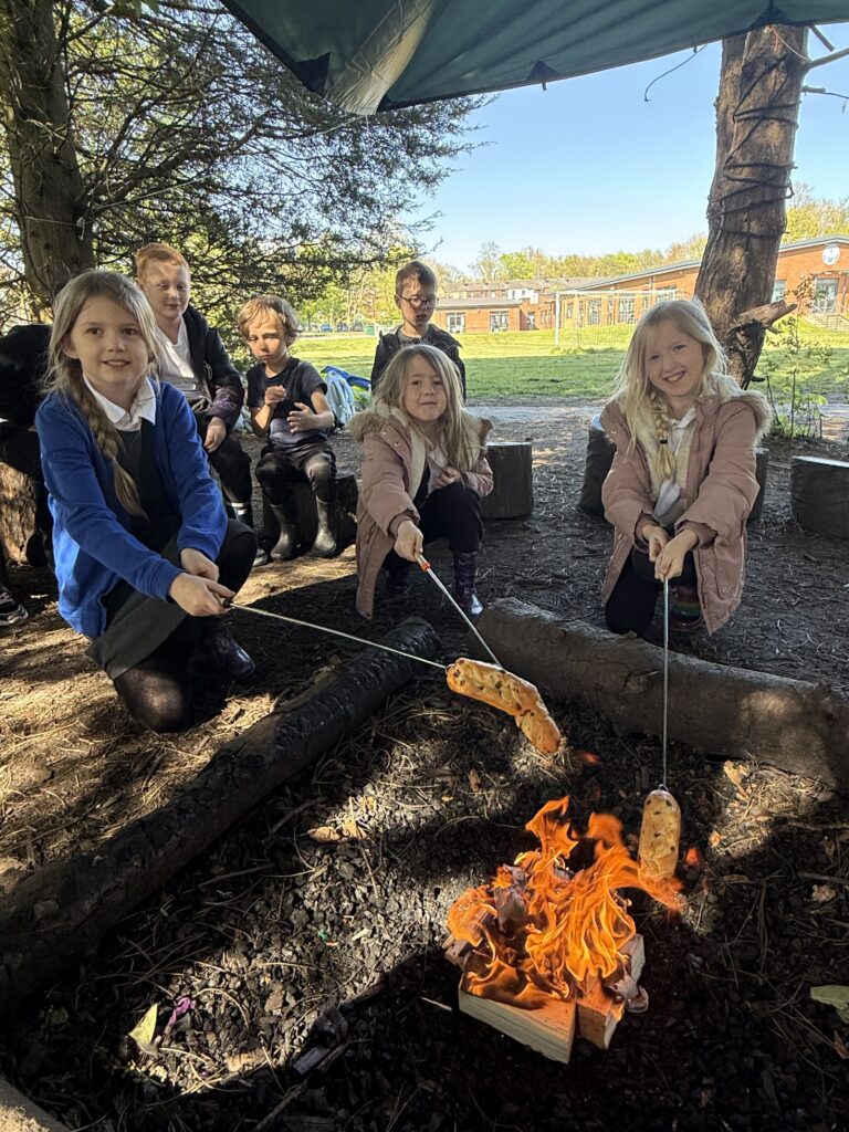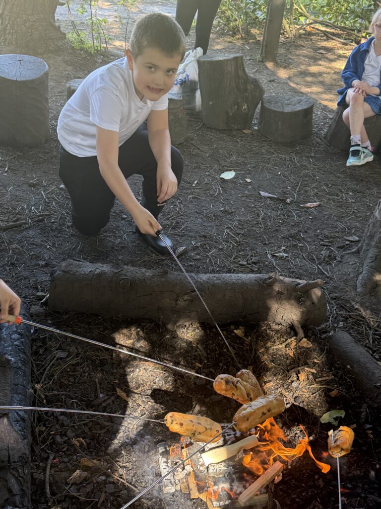 We began around the campfire, where the children enjoyed brioche together while chatting and settling in, developing their speaking and listening skills. They then got creative, making fairy wands and decorating fairy doors using natural materials, showing imagination and staying positive as they worked through their ideas.