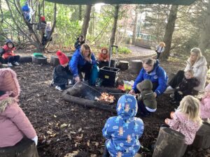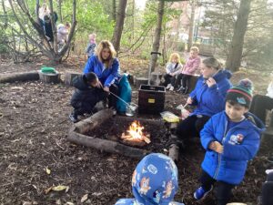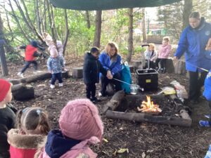 This morning we had a special Christmas treat in Forest School, we made smores! We started a fire safely with the help of Miss Dewhurst. We then talked about being careful around the fire and took it in turns to cook our marshmallow over the fire. We sandwiched it between two chocolate biscuits and then enjoyed our treat, Yum!