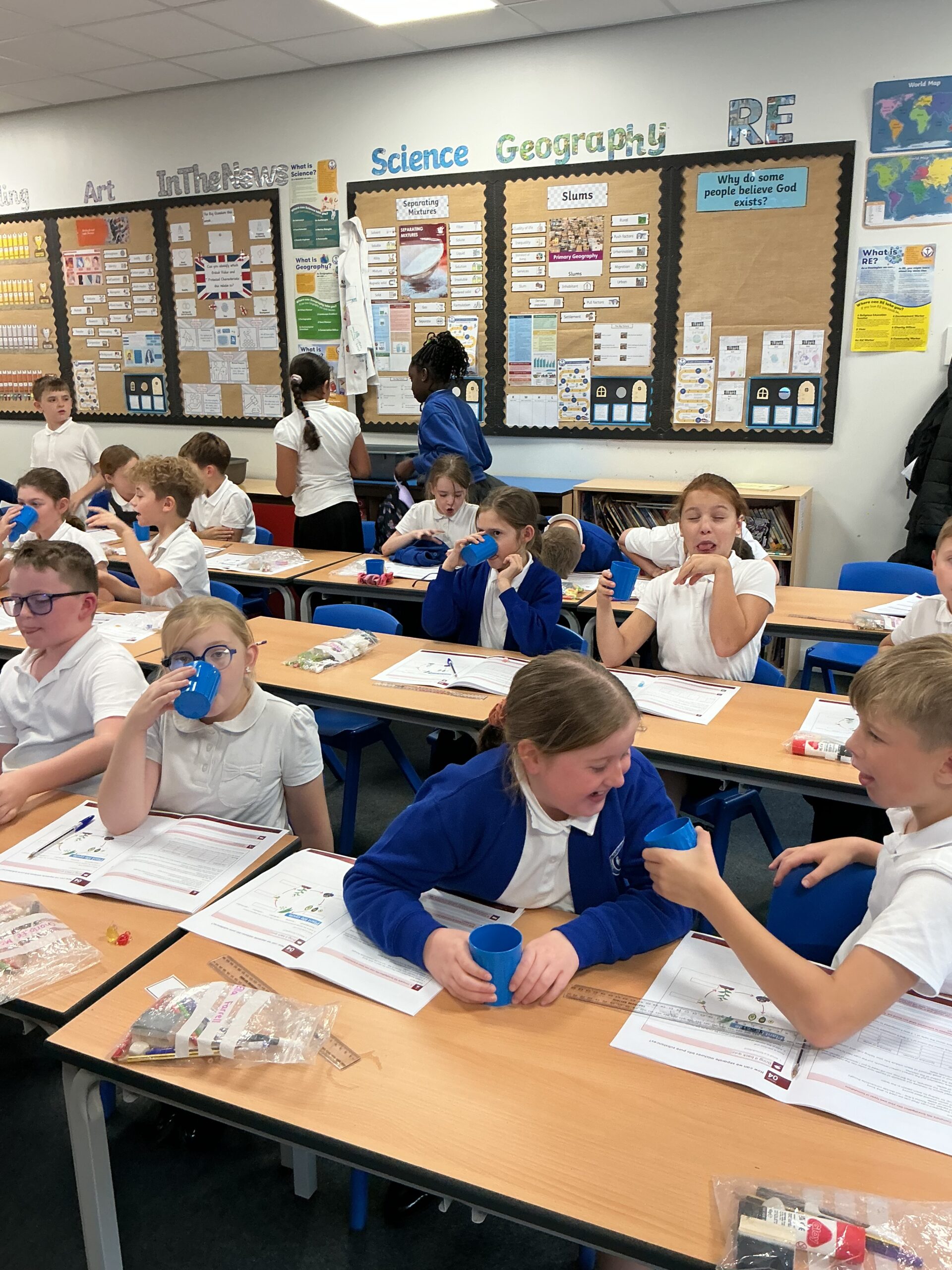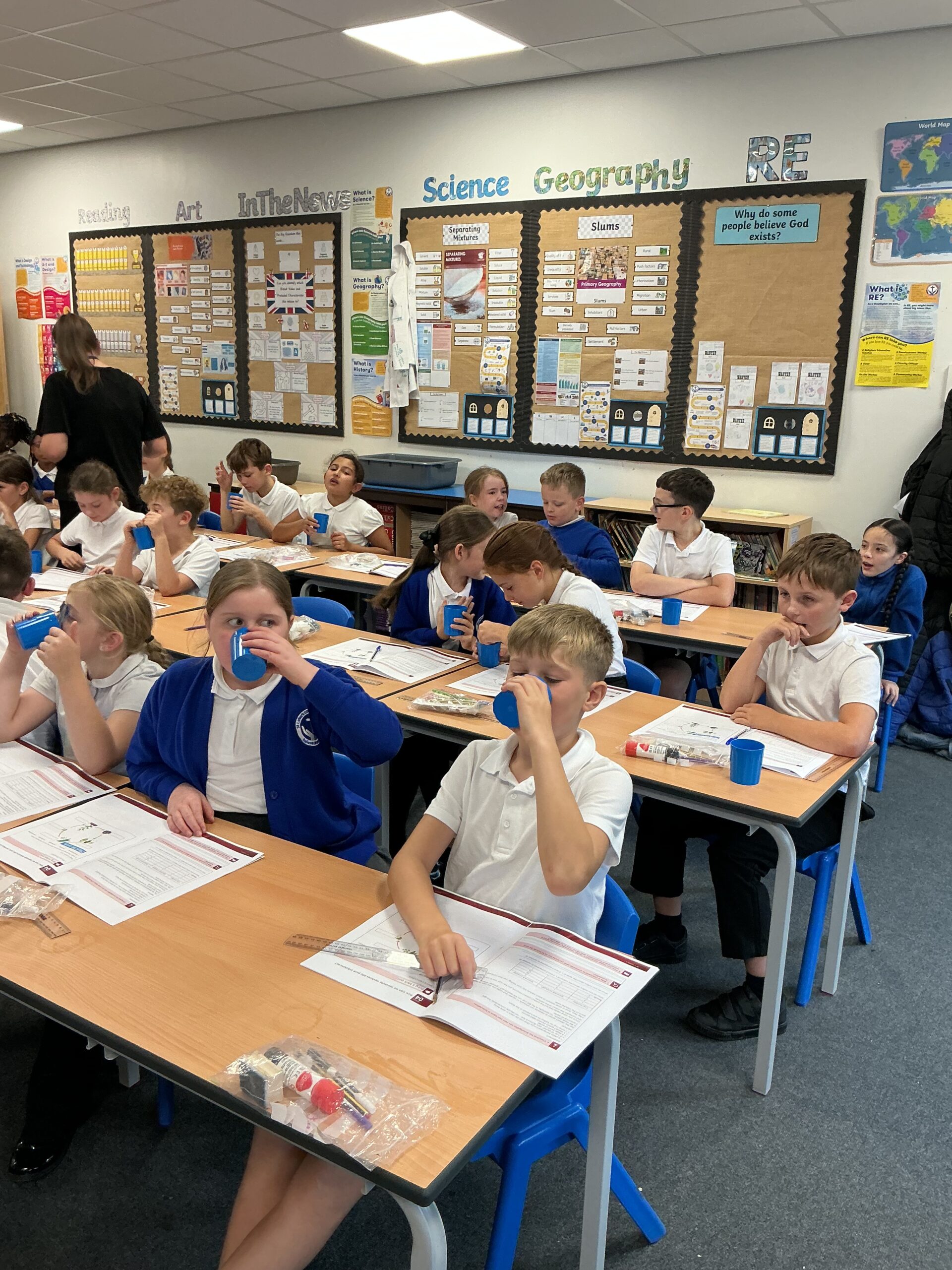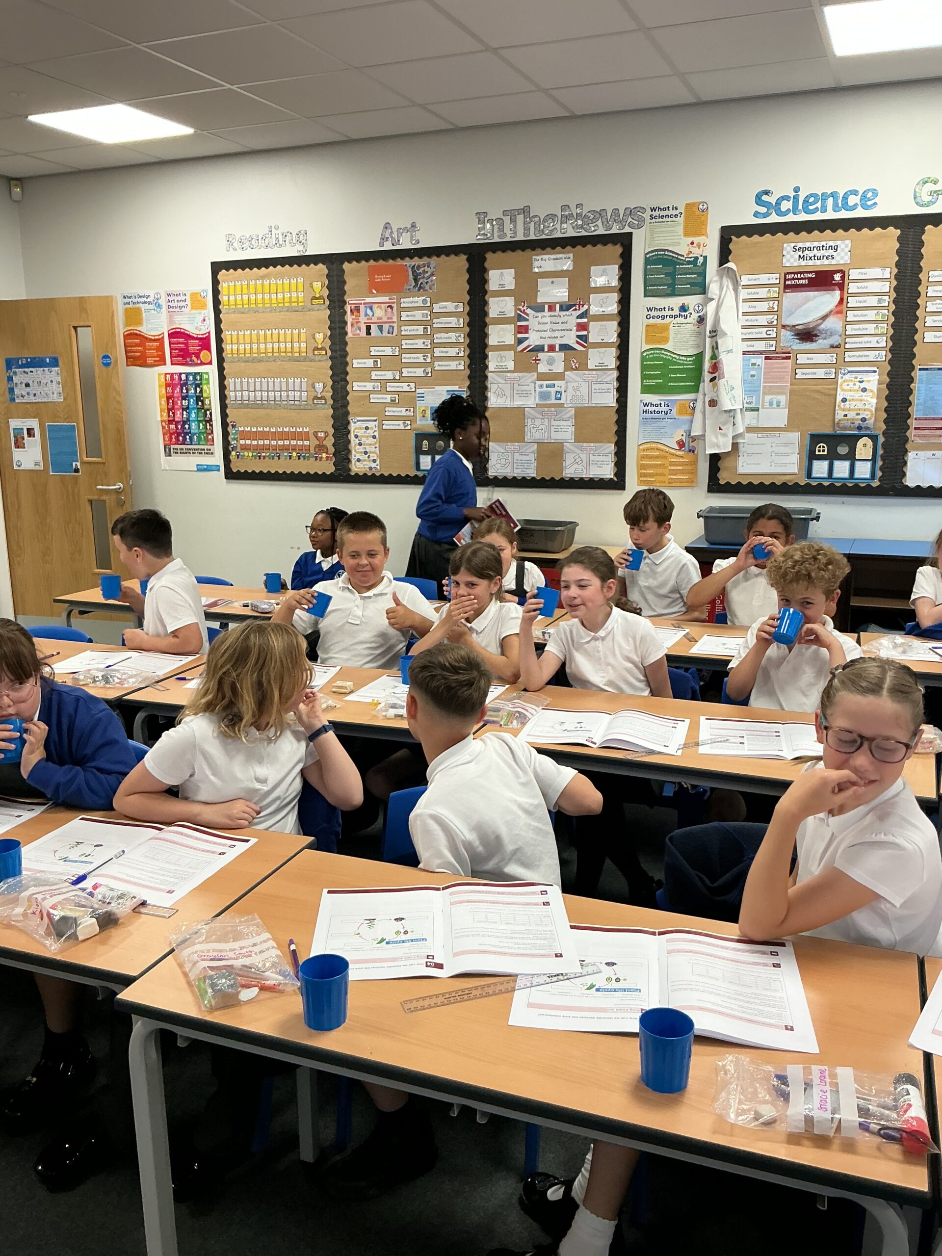 This afternoon, Year 5 Juniper and Pine carried out an experiment in their Science lesson. We have been carrying out a topic called ‘Separating Mixtures’ and have most recently learnt about what formulations are, how they are made and how they can be useful. We carried out an experiment with cordial juice and water. We tried out a formulation containing too much water, too much juice, and the correct amount of each. The children enjoyed tasting the juices and comparing the colours and strengths of the juice. The children realised the importance of getting the formulation correct for achieving the desired end product.