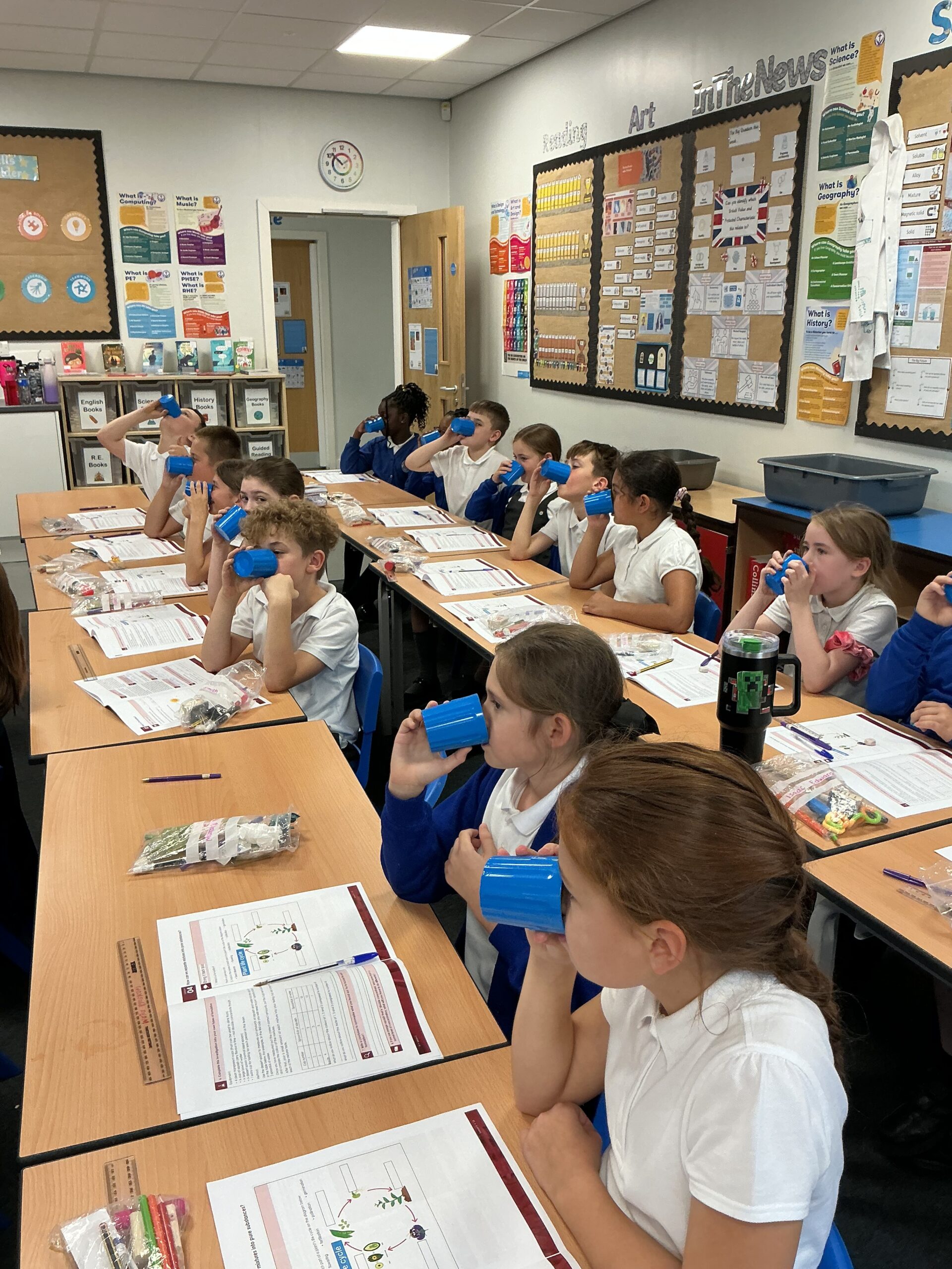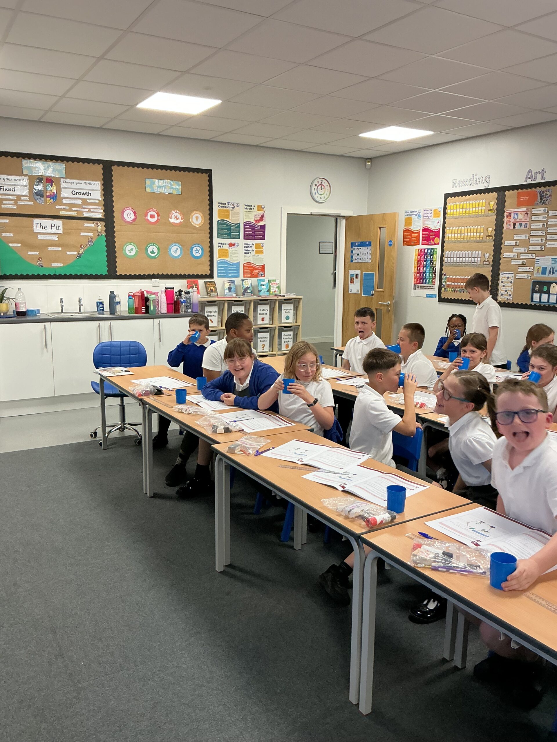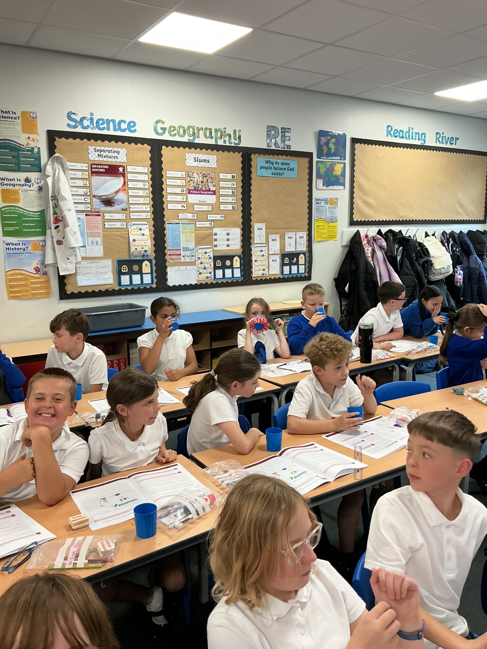 This afternoon, Year 5 Juniper and Pine carried out an experiment in their Science lesson. We have been carrying out a topic called ‘Separating Mixtures’ and have most recently learnt about what formulations are, how they are made and how they can be useful. We carried out an experiment with cordial juice and water. We tried out a formulation containing too much water, too much juice, and the correct amount of each. The children enjoyed tasting the juices and comparing the colours and strengths of the juice. The children realised the importance of getting the formulation correct for achieving the desired end product.
