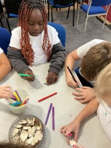 - The second was about the harvest of the flock. At this station the children looked at different types of wool and discussed which harvest come from sheep farming. They then went on to decorate a small wooden heart to turn into a pendant.