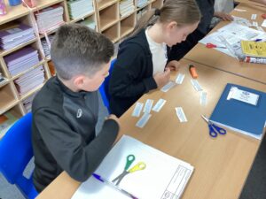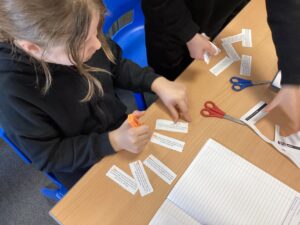 Pine have been learning how to link ideas across paragraphs using adverbials of time, place, number and tense choices. We read through a number of texts and identified the adverbials used, then we tried to order a story by identifying the adverbials.