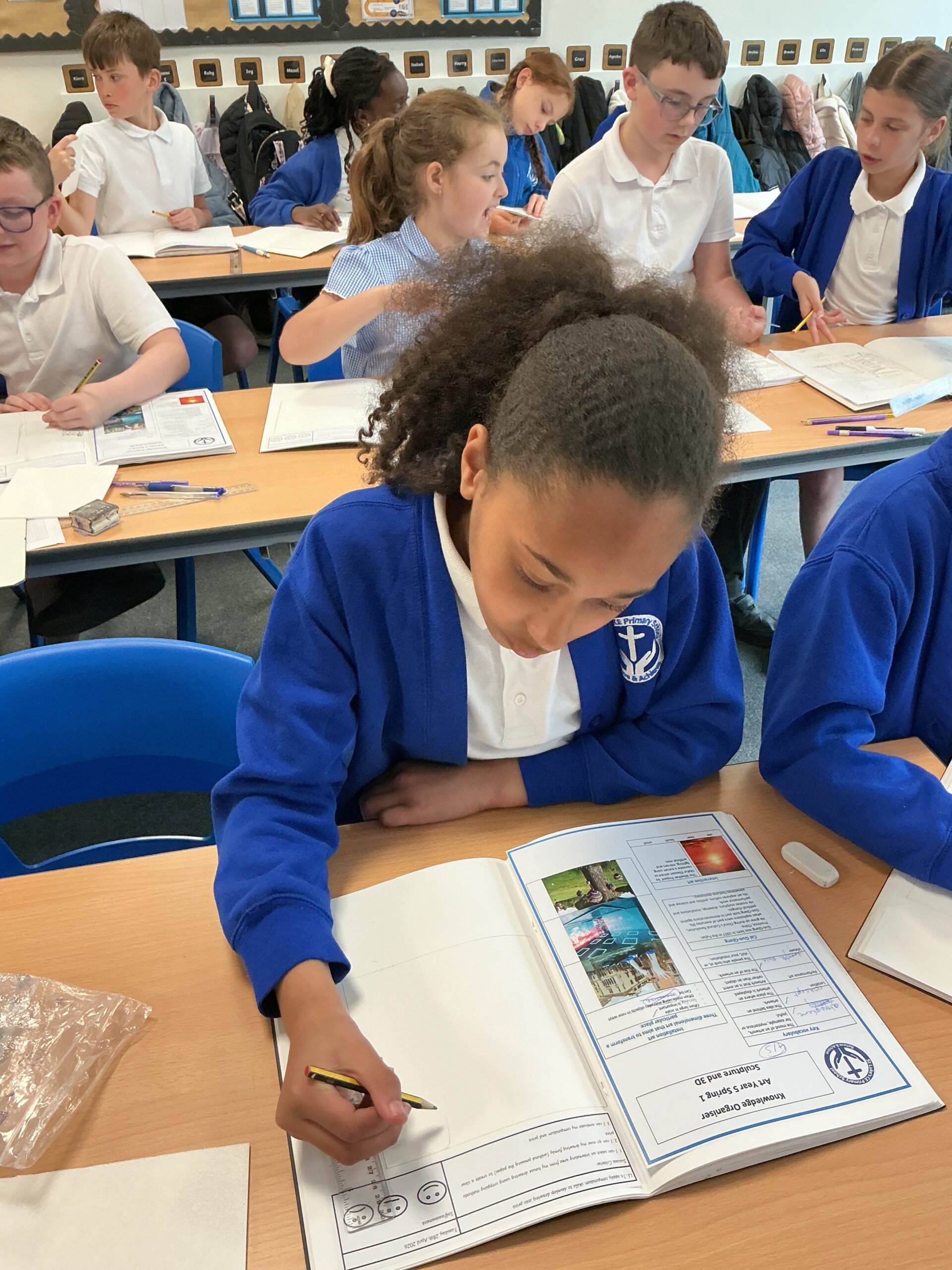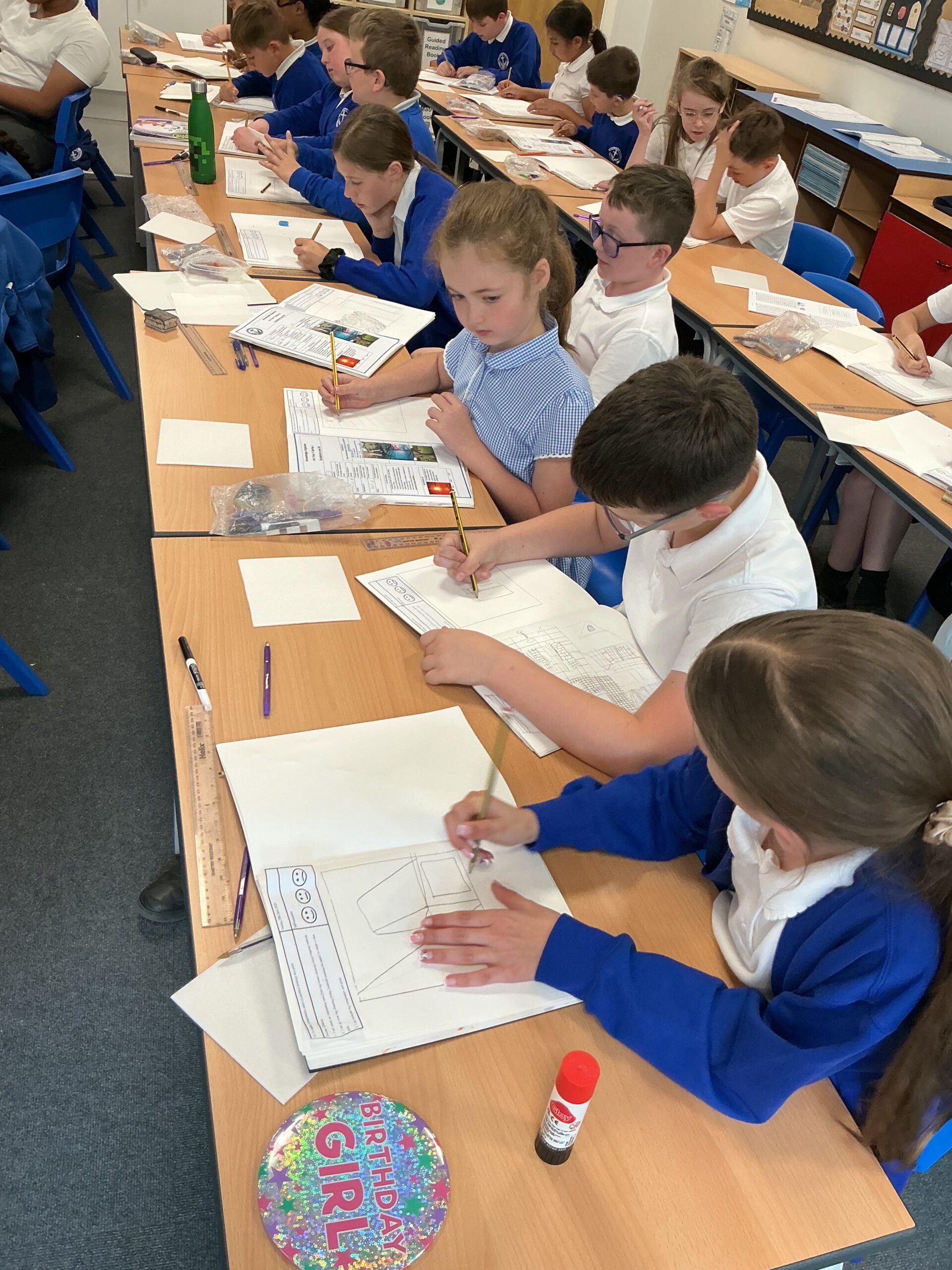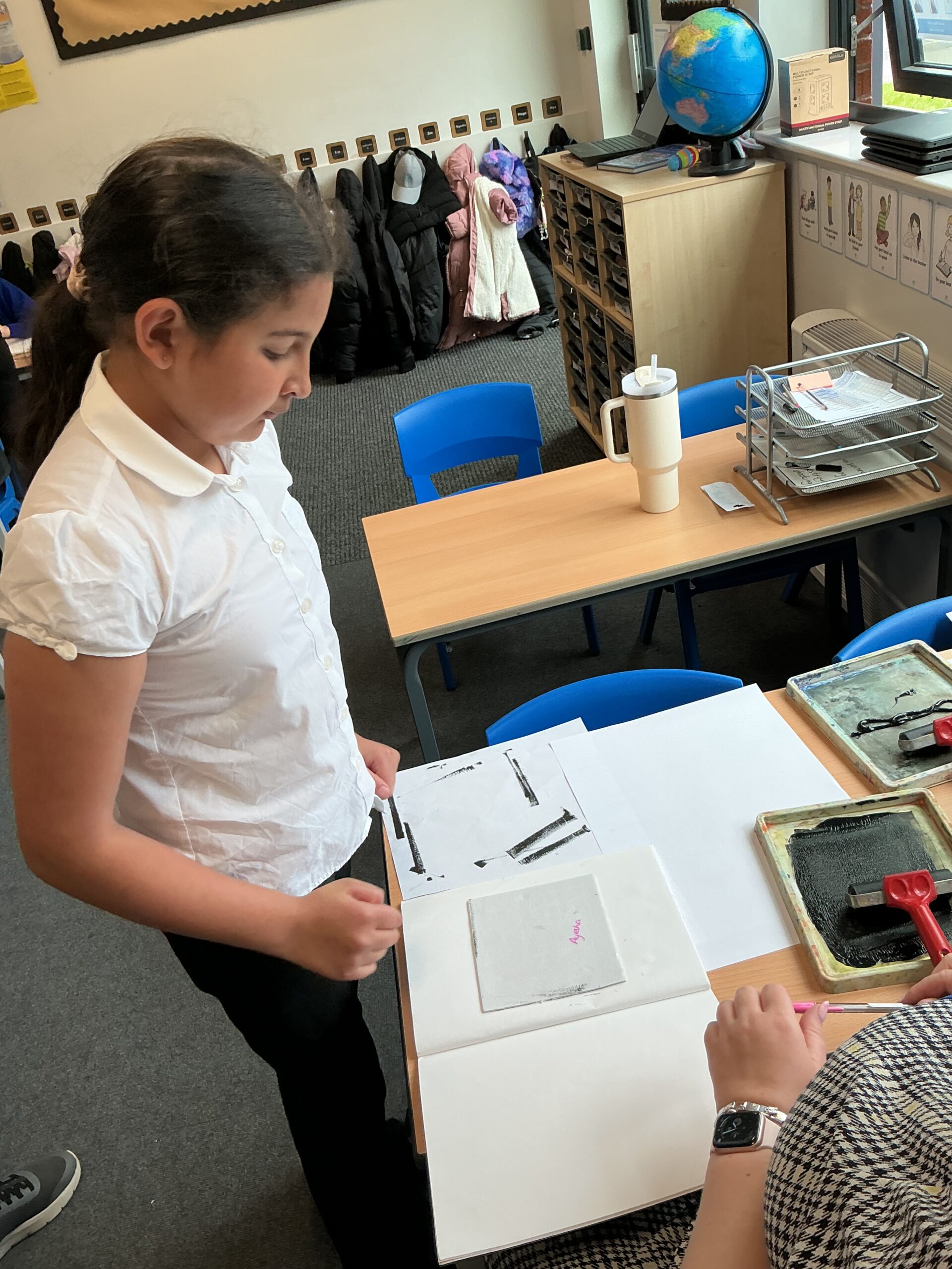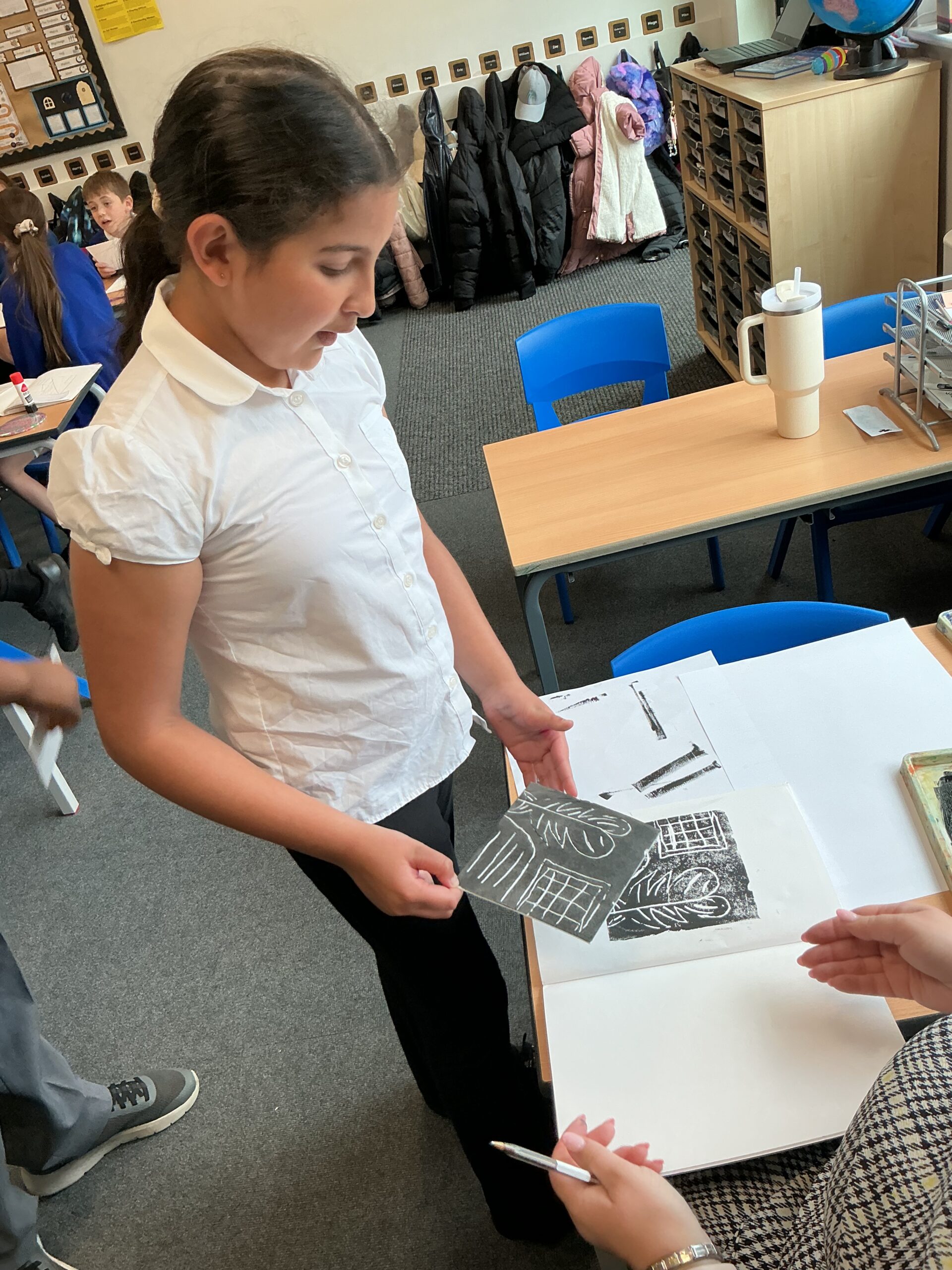 In our art topic this half term, year 5 are looking at craft and design, specifically architecture. We have looked at houses and buildings so far and have even made our own drawings of houses. Today, we selected a small area of our drawing from last lesson as if we had ‘zoomed in’ and copied this section larger. We then imprinted this onto polystyrene and used printing ink to print our design. The designs worked really well and the children were really impressed with their work! Well done, Juniper!