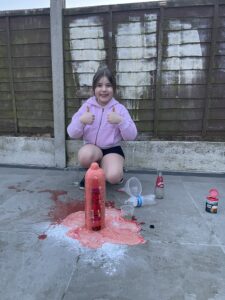 Wow, what a fantastic effort from some of our pupils this week! They have been busy creating erupting volcanoes at home. They carried out the following experiment to see an erupting volcano: