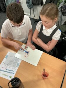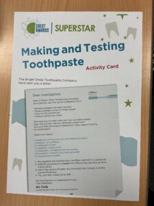 For week 2 of STEM Club, we were making and testing toothpaste! The children were sent a letter from The Bright Smile Toothpaste Company asking them to make and test their new recipe of toothpaste. The children followed their recipe and mixed their ingredients together well, adding colouring if they wished to do so, before putting their creations to the test! The children had whiteboards that had been stained with permanent marker pen. They used their creations to see if they worked well enough to remove the stain. They all did really well and managed to remove the stains so the whiteboards were sparkling new! Well done, STEM Club!