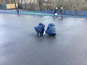 Today we took our Maths lesson outside! Around the playground were question cards e.g. 25×6. We had to then find the answer which then led us to another question. We had lots of fun!