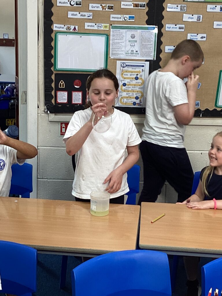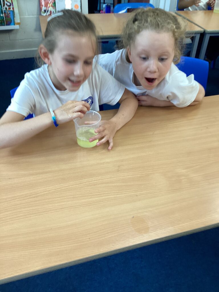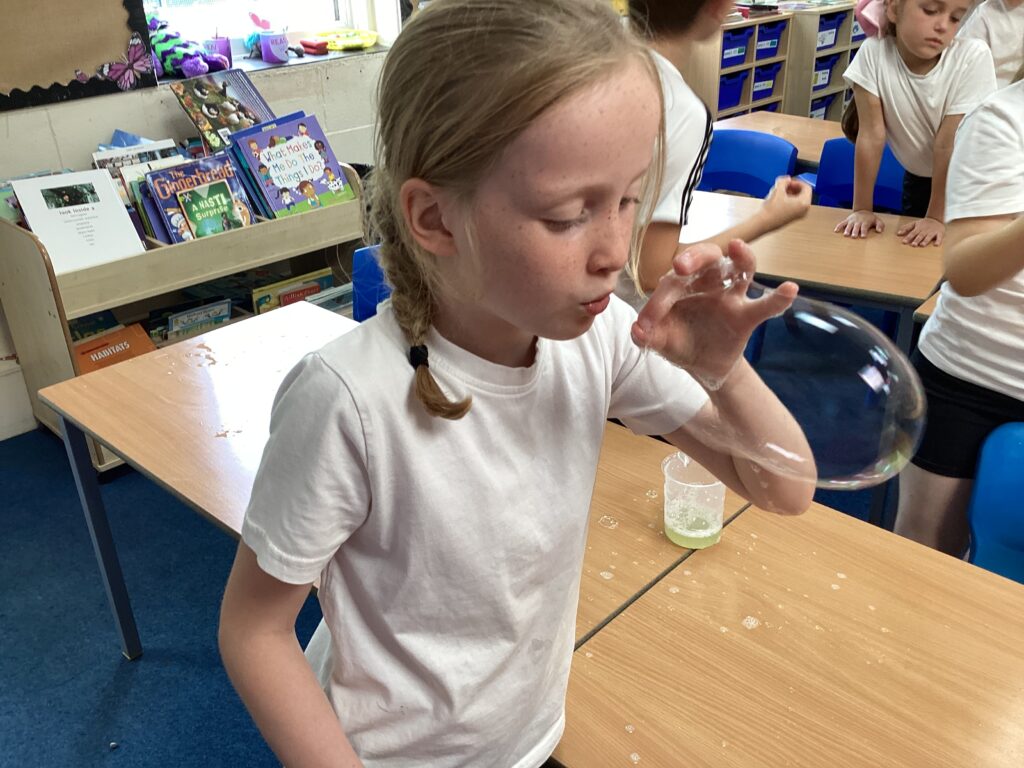 In Science this half-term, Year 2 have been learning about states of matter. This week we learnt what a mixture is. We then completed a mixture experiment to find out which substance (soap, washing up liquid or bubble bath) combined with water makes the best bubbles. We had lots of fun!